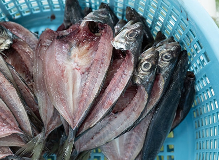 私たちの干物にはアミノ酸やビタミンC、着色料・保存料などの添加物を一切使いません。原料は魚と塩のみです。