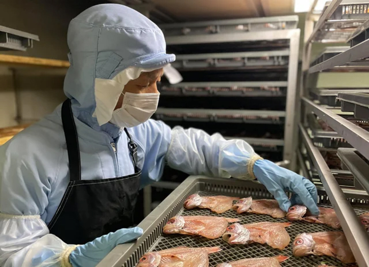 渡邊水産では半世紀にわたり受け継いできた熟練の職人の技術により、ドリップが出過ぎない最適な水分量を干物ごとに